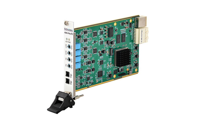 The ASMC-PXIe-A²B uses 32-bit ΔΣ ADC/DAC with sampling rates covering 48/96/192/384/768 kHz, spanning from voice to high-bandwidth scenarios; at 48 kHz it achieves >110 dB SNR and THD+N < –110 dB. An onboard A²B transceiver (AD2428) supports up to 11 nodes (1 master + 10 slaves) and 32 uplink/32 downlink channels, and a maximum bus length of about 40 m, fitting a vehicle daisy-chain topology. The card provides 2 Vrms analog I/O and 3.5 mm TRS compatible single-ended/differential inputs, and it integrates an IEPE constant-current source and supports TEDS identification to facilitate cooperation with sensors/fixtures. For R&D bring-up and compatibility verification, it can capture bus waveforms as well as support node-level testing and signal injection to quickly locate link and audio-consistency issues.