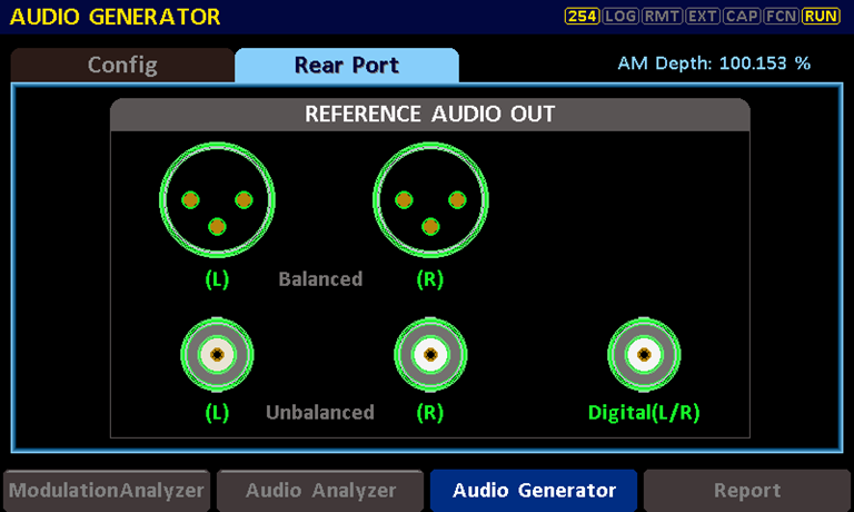 1、使用RWC2500A Plus的基带音频信号发生模块时,首先可以在Audio Generator界面选择Rear Port,在此界面可快速调整所需的音频输出接口(平衡/非平衡/数字),选择好之后进入下一步。
