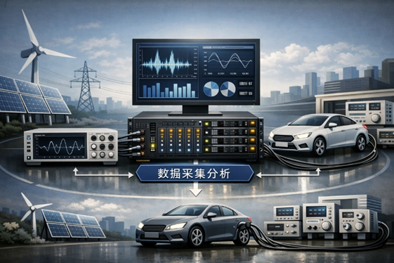 随着新能源汽车、光伏发电、储能系统及各类电力电子设备的快速发展,电力测试已从单纯的电压、电流记录,逐步演变为对功率、效率、能量流向、谐波、动态响应及系统稳定性的综合评估。无论是产品研发、性能验证,还是型式试验与现场问题定位,测试工作的核心都离不开一套能够稳定、同步、可追溯地获取关键数据的数据采集系统。数据采集系统不仅决定“能不能测到”,更决定“能不能测准、测全、测明白”。