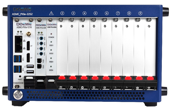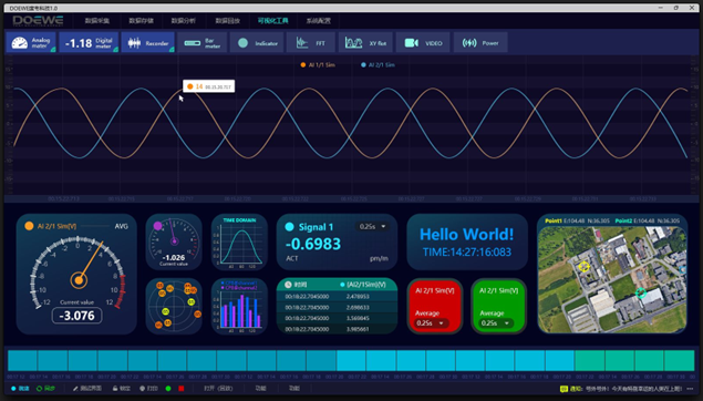 典型配置为:PXIe 机箱+嵌入式控制器+高速存储卡,满足长时间连续记录与数据回放复算;机箱提供 10 MHz 时钟 I/O,支持与转台/温控/位置台等系统统一时基与扩展同步;采集板卡按被测件输出形态(模拟/频率/数字)选配,兼顾时域观测、统计均值/离散度计算与频域分析需要。